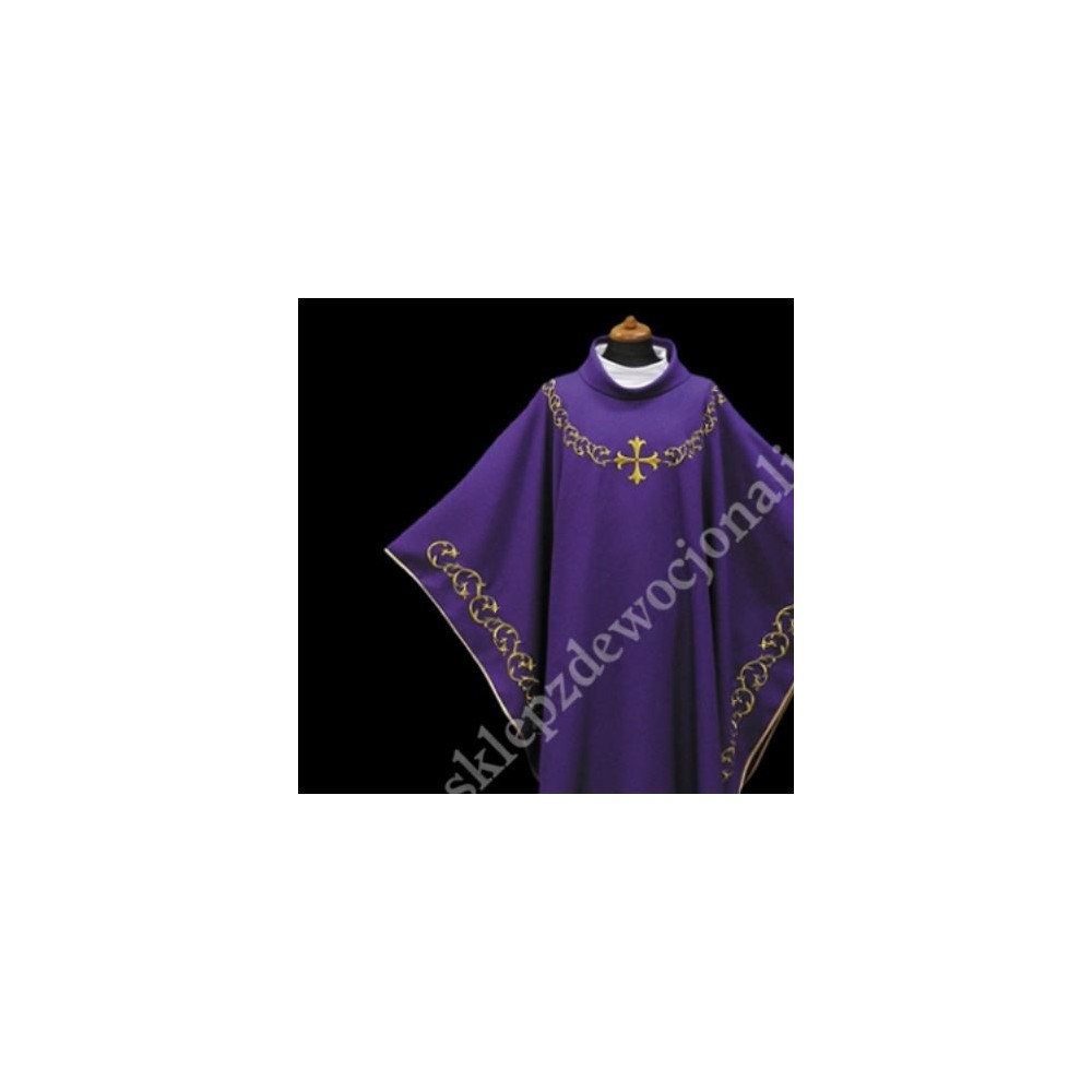 Ornat monastyczny zdobiony oryginalnym złotym haftem na ramionach i u dołu tkaniny, ze stułą wewnętrzną. Całość wykończona złotą lamówką.