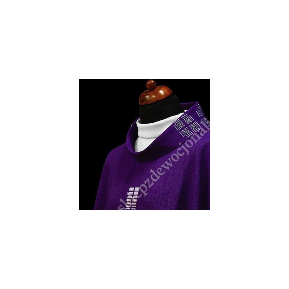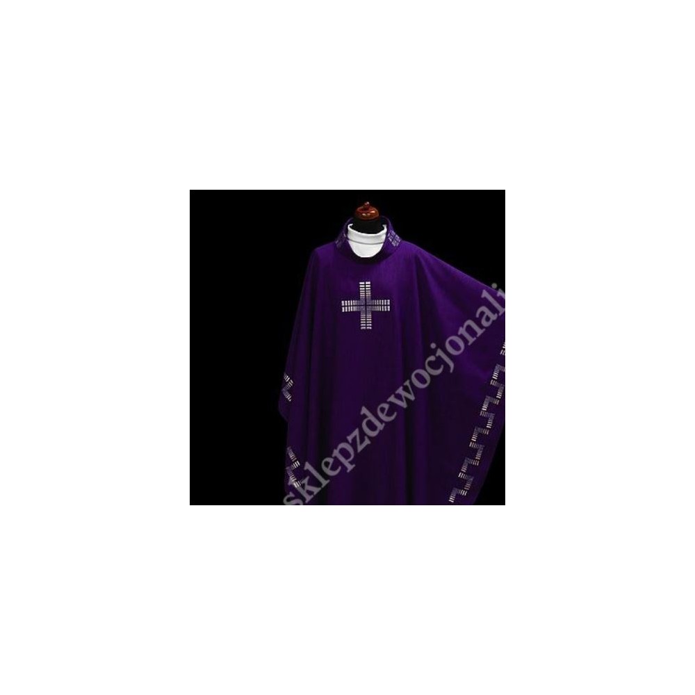 Elegancki ornat uszyty w stylu monastycznym, ze stułą wewnętrzną. Ornat ozdobiony nowoczesnym haftem krzyża, haft również na kołnierzu oraz po bokach. Haft wykonany cieniowaną, satynowa nicią.