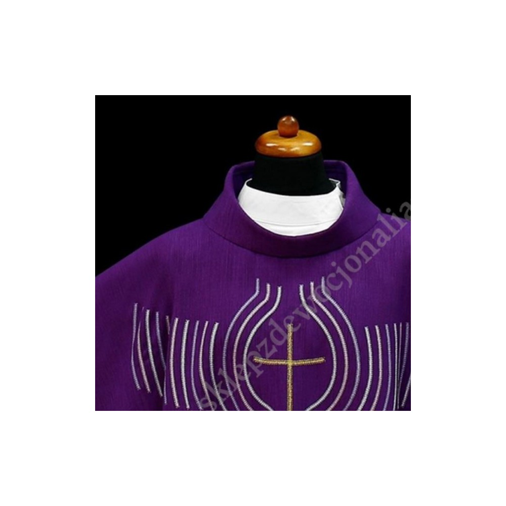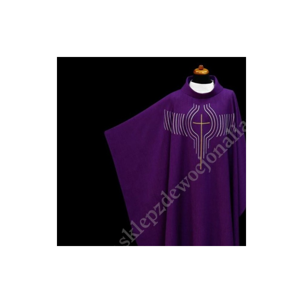 Ornat wykonany z lekkiej tkaniny z nowoczesnym haftem.