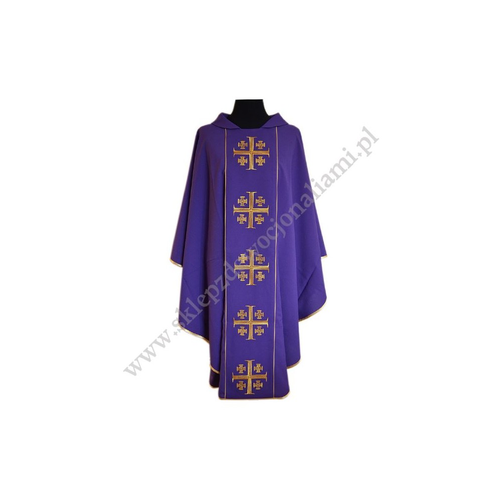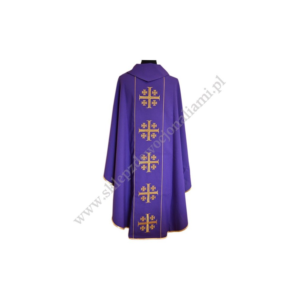 Ornat z pasami haftowanymi komputerowo. Wykonany z lekkiego i przyjemnego w dotyku materiału. W komplecie stuła wewnętrzna.