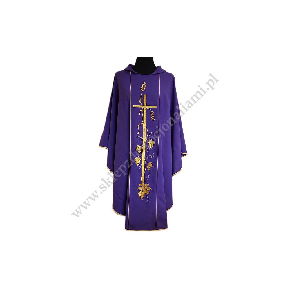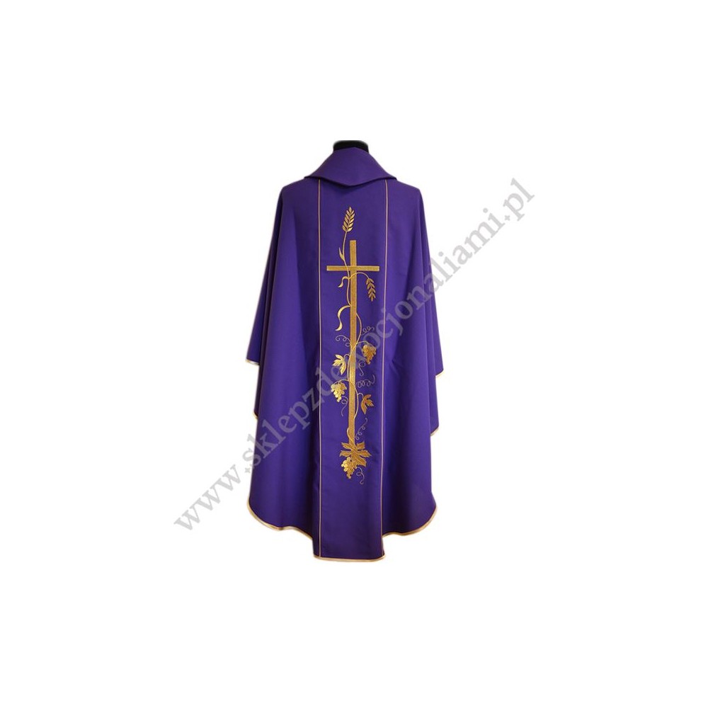 Ornat z pasami haftowanymi komputerowo. Wykonany z lekkiego i przyjemnego w dotyku materiału. W komplecie stuła wewnętrzna.