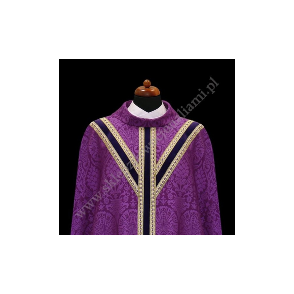 Ornat semigotycki uszyty z wysokiej jakości tkaniny typu adamaszek.