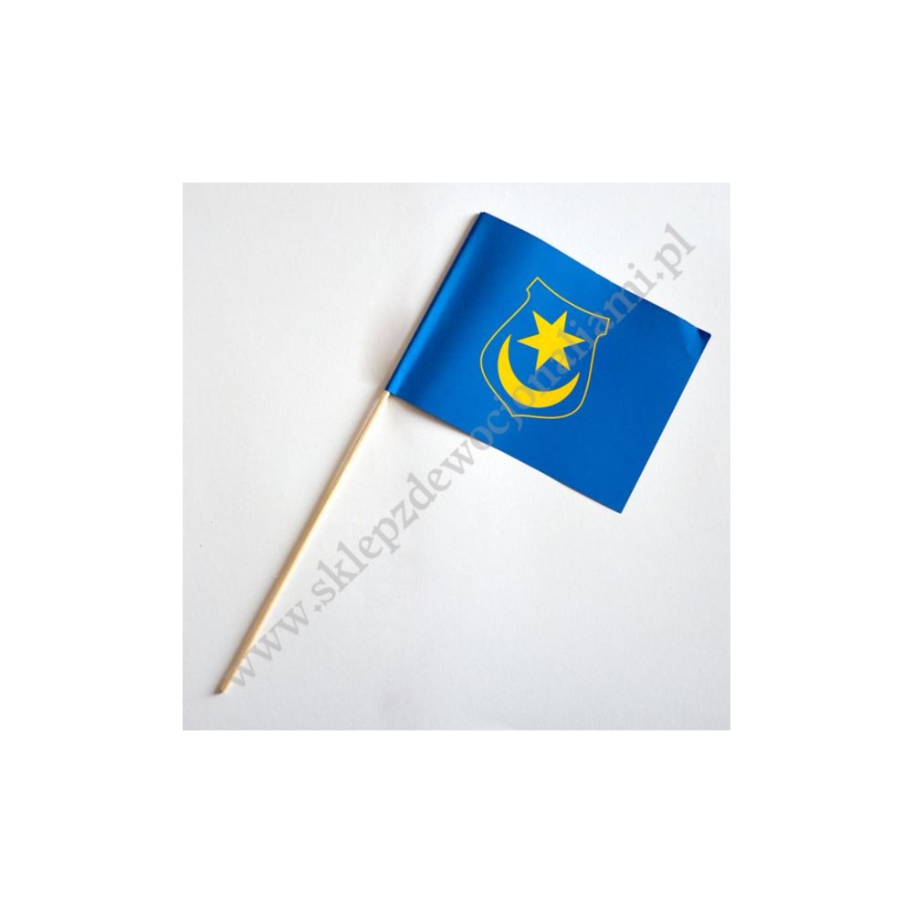 Papierowa chorągiewka z herbem Tarnowa w wymiarach 20 x 15 cm
