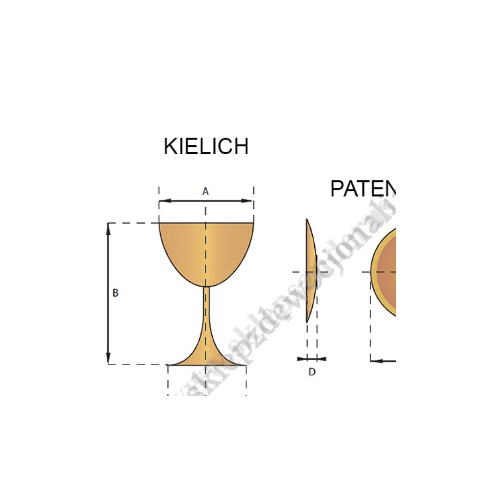 Futerał na kielich mszalny wykonany z drewna, oklejony na zewnątrz skajem, wewnątrz welur. Futerał jest wykonywany pod zamówienie według wymiarów, które prosimy podać w komentarzu do zamówienia, według powyższego schematu. Dla ułatwienia wykonania futerału można również przesłać na maila biuro@sanderus.com.pl zdjęcia kielicha na który futerał ma być wykonany. Czas realizacji zamówienia to ok. 30 dni roboczych.