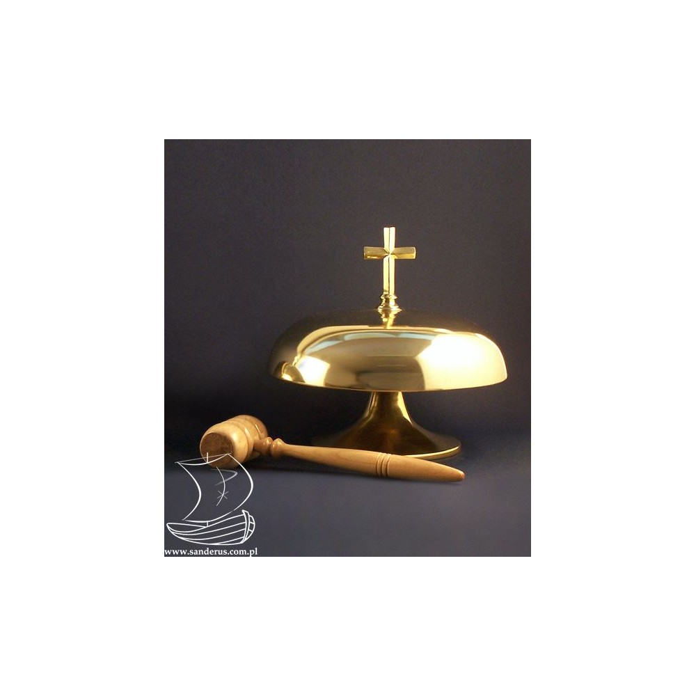 Gong pojedynczy, mosiężny o średnicy 26 cm. W komplecie znajduje się drewniana pałka.