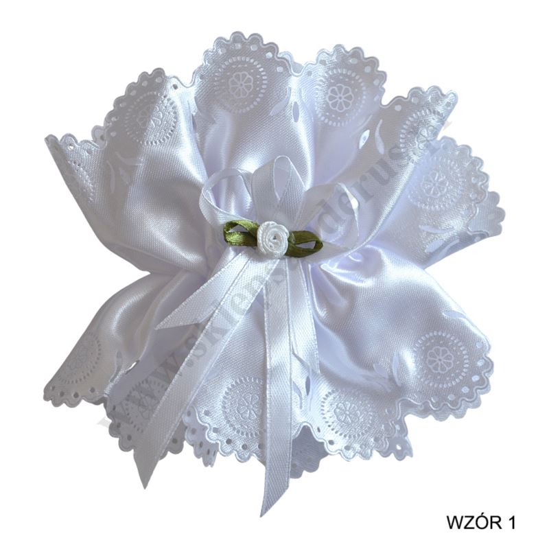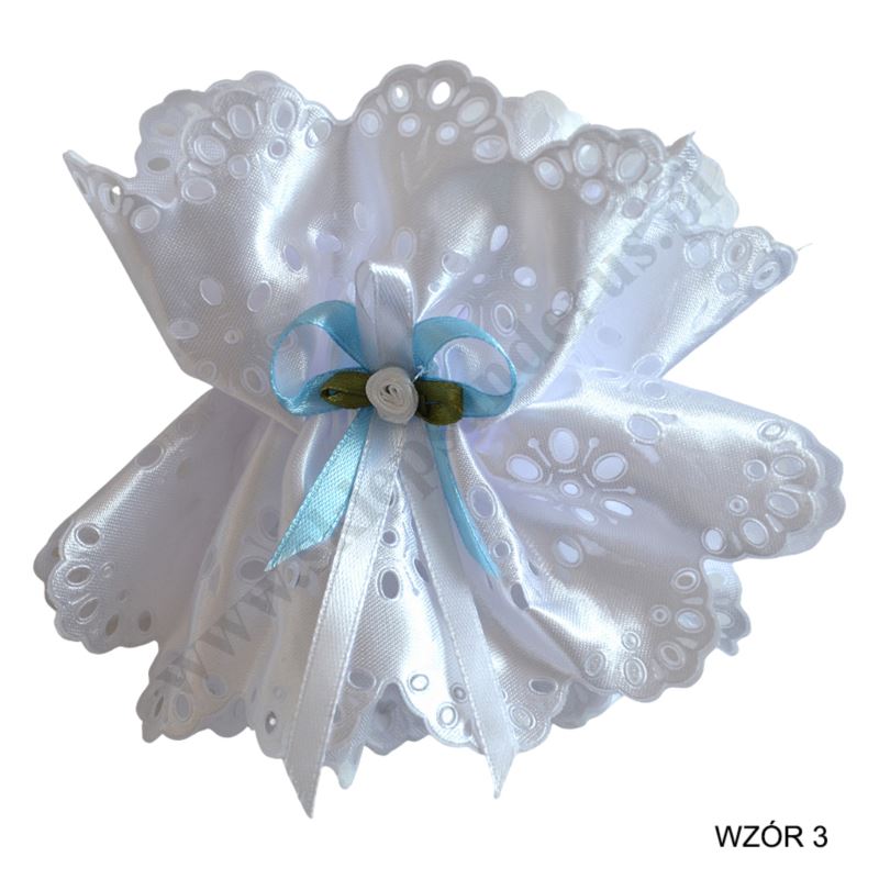 Okapnik profitka satynowa ozdobna do przyzdobienia gromnicy, dostępna w trzech wzorach.