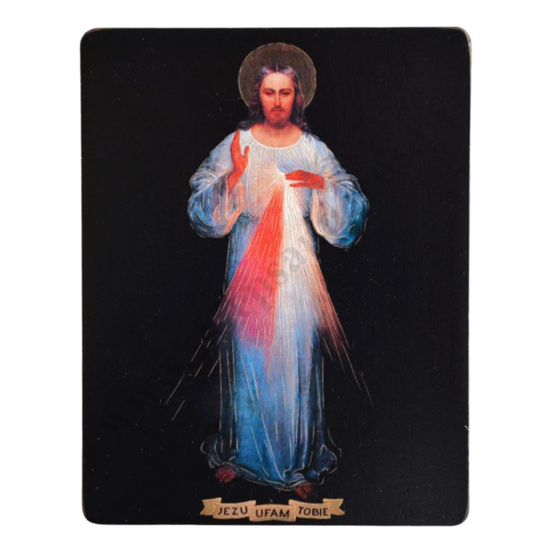 Ikona przedstawiająca wizerunek Jezu Ufam Tobie o wymiarze 11 x 14 cm i grubości 2.3 cm. PONIŻEJ W PRODUKTACH POWIĄZANYCH ISTNIEJE MOŻLIWOŚĆ ZAMÓWIENIA OKAZJONALNEJ DEDYKACJI NA TABLICZCE SREBRNEJ LUB ZŁOTEJ.