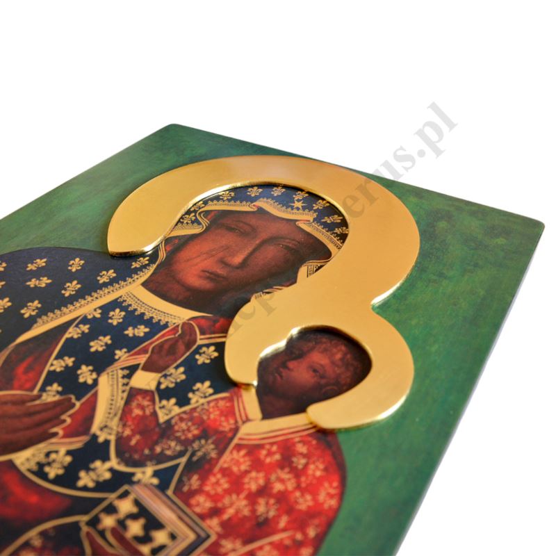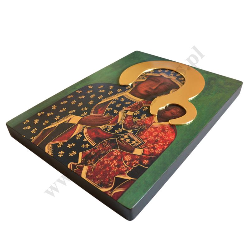 Ikona Matki Bożej Częstochowskiej o szerokości 17 cm, wysokości 23 cm. Drewno wykorzystywane do produkcji ikon dobierane jest w niezwykle staranny sposób. Produkt wspaniale sprawdzi się jako jedyny w swoim rodzaju upominek dla najbliższych.