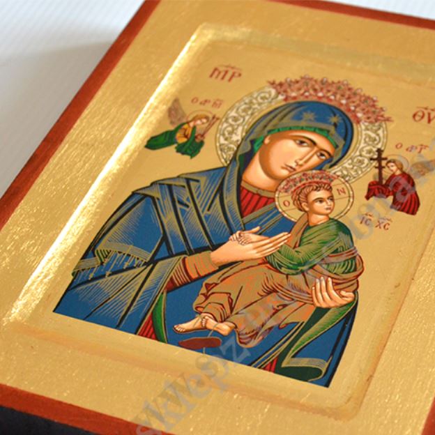Ikona Matki Boże Nieustającej Pomocy w wymiarze 14 x 18 cm. PONIŻEJ W PRODUKTACH POWIĄZANYCH ISTNIEJE MOŻLIWOŚĆ ZAMÓWIENIA OKAZJONALNEJ DEDYKACJI NA TABLICZCE SREBRNEJ LUB ZŁOTEJ.