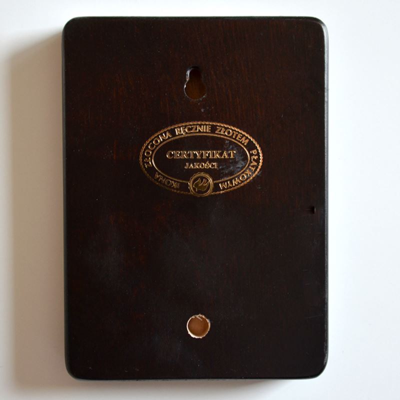 Ikona wykonana unikalną technologią nanoszenia obrazu na drewno, która pozwala na wierne odtworzenie oryginału. Deska olchowa, lita klejona, odporna na pęknięcia i wygięcia. Złocenia na ikonie wykonane ręcznie, złotem płatkowym.