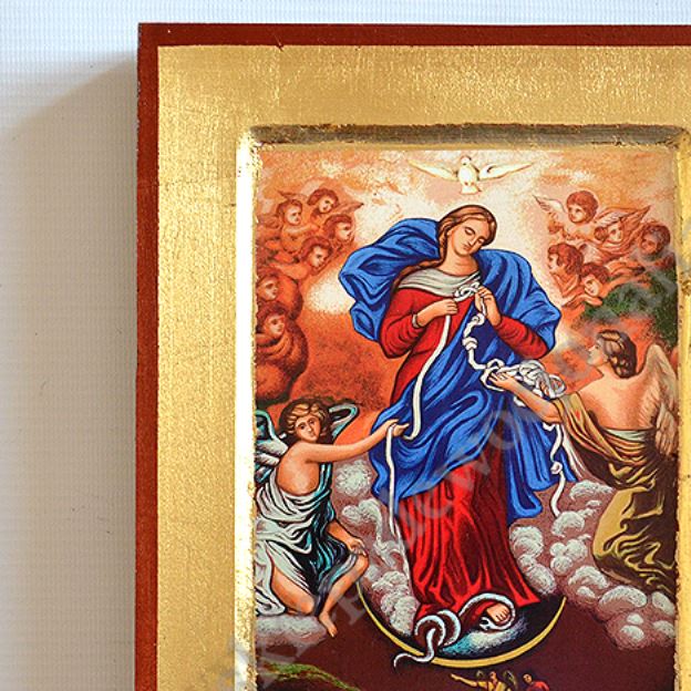 Ikona Matki Bożej Rozwiązującej Węzły w wymiarze 18 x 24 cm. PONIŻEJ W PRODUKTACH POWIĄZANYCH ISTNIEJE MOŻLIWOŚĆ ZAMÓWIENIA OKAZJONALNEJ DEDYKACJI NA TABLICZCE SRERNEJ LUB ZŁOTEJ.