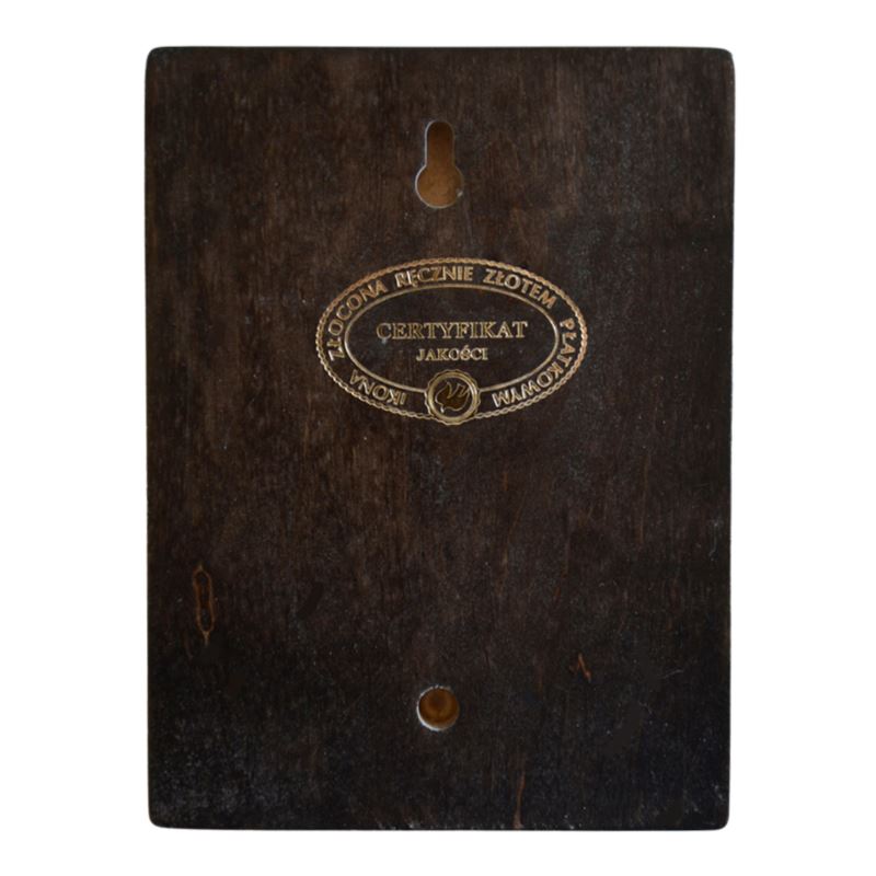 Ikona wykonana unikalną technologią nanoszenia obrazu na drewno, która pozwala na wierne odtworzenie oryginału. Deska olchowa, lita klejona, odporna na pęknięcia i wygięcia. Złocenia na ikonie wykonane ręcznie, złotem płatkowym.