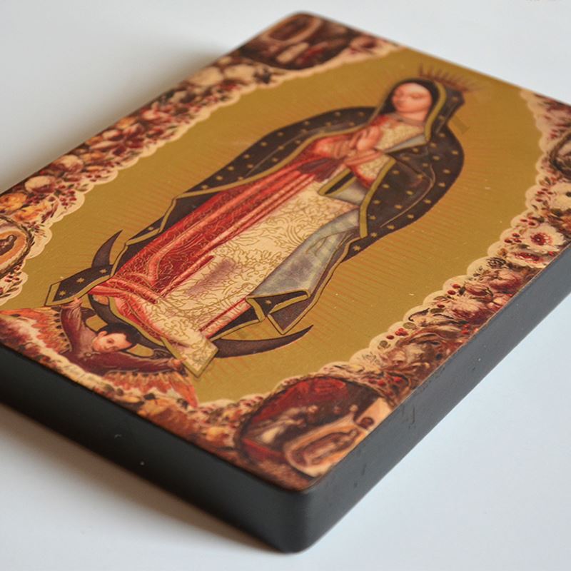Ikona Matki Bożej z Guadelupe o wymiarze 12 x 16.4 cm i grubości 1.8 cm. PONIŻEJ W PRODUKTACH POWIĄZANYCH ISTNIEJE MOŻLIWOŚĆ ZAMÓWIENIA OKAZJONALNEJ DEDYKACJI NA TABLICZCE SREBRNEJ LUB ZŁOTEJ