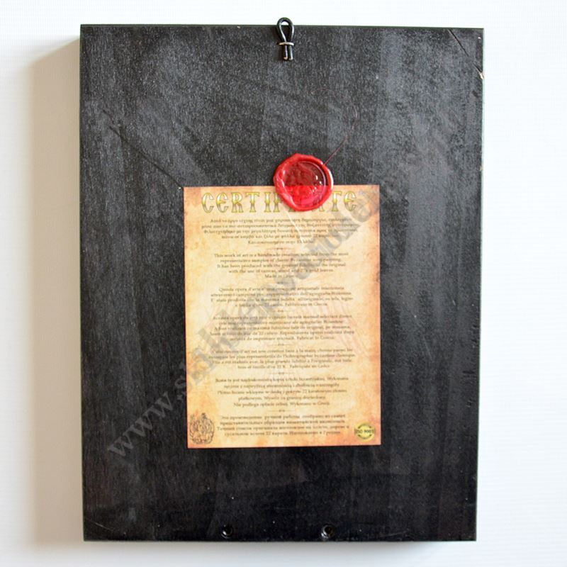 Ikona przedstawiająca Michała Archanioła w wymiarze 24 x 31 cm. PONIŻEJ W PRODUKTACH POWIĄZANYCH ISTNIEJE MOŻLIWOŚĆ ZAMÓWIENIA OKAZJONALNEJ DEDYKACJI NA TABLICZCE SREBRNEJ LUB ZŁOTEJ.