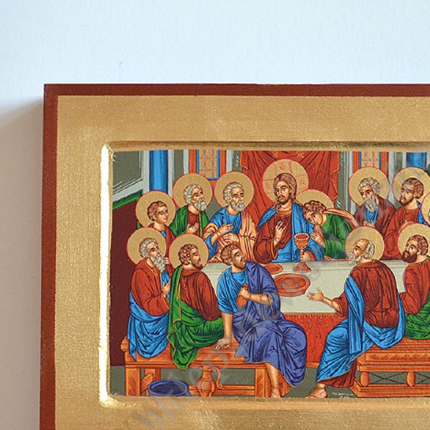 Ikona Ostatnia Wieczerza w wymiarze 24 x 18 cm. PONIŻEJ W PRODUKTACH POWIĄZANYCH ISTNIEJE MOŻLIWOŚĆ ZAMÓWIENIA OKAZJONALNEJ DEDYKACJI NA TABLICZCE SREBRNEJ LUB ZŁOTEJ.