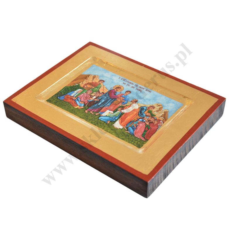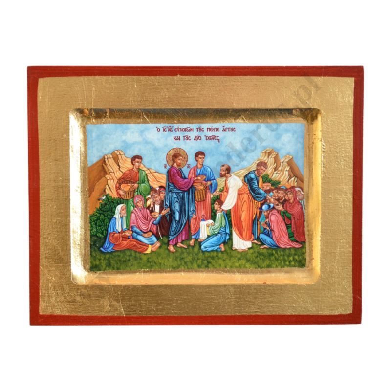 Ikona przedstawiająca scenę rozmnożenia chleba w wymiarze 18 x 14 cm. PONIŻEJ W PRODUKTACH POWIĄZANYCH ISTNIEJE MOŻLIWOŚĆ ZAMÓWIENIA OKAZJONALNEJ DEDYKACJI NA TABLICZCE SREBRNEJ LUB ZŁOTEJ.
