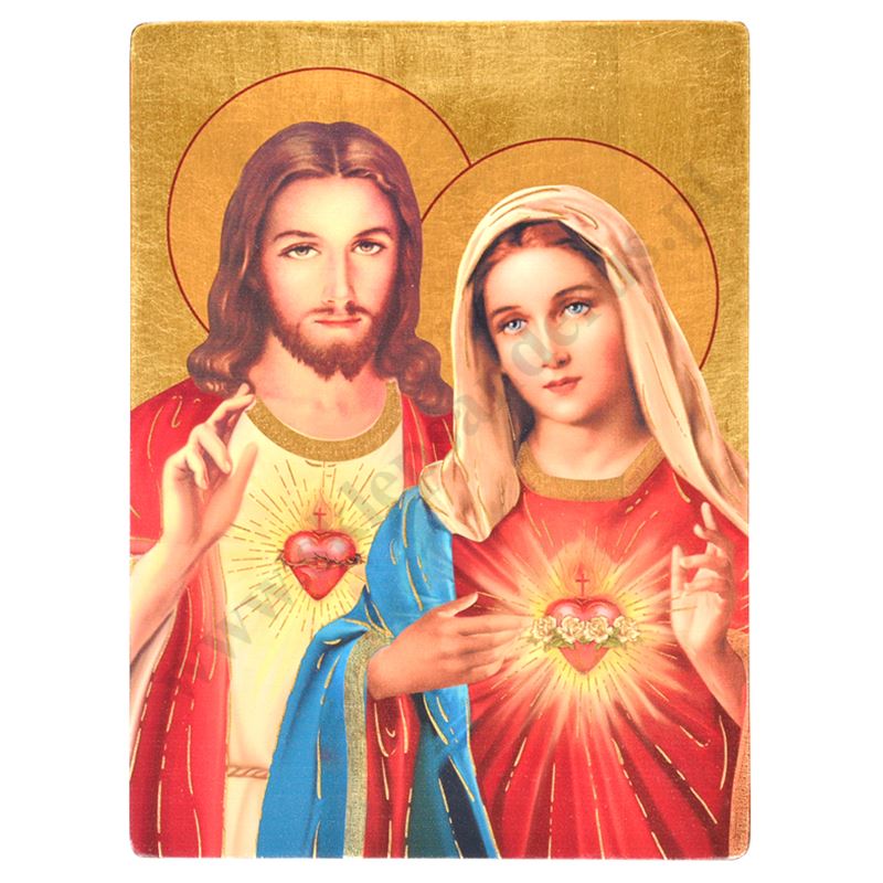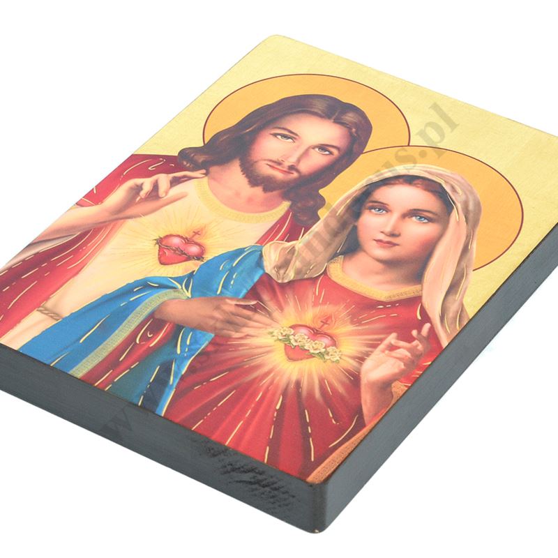 Ikona przedstawiająca wizerunek Serca Jezusa i Serca Matki Bożej o wymiarze 17 x 23 cm i grubości 2.5 cm. PONIŻEJ W PRODUKTACH POWIĄZANYCH ISTNIEJE MOŻLIWOŚĆ ZAMÓWIENIA OKAZJONALNEJ DEDYKACJI NA TABLICZCE SREBRNEJ LUB ZŁOTEJ