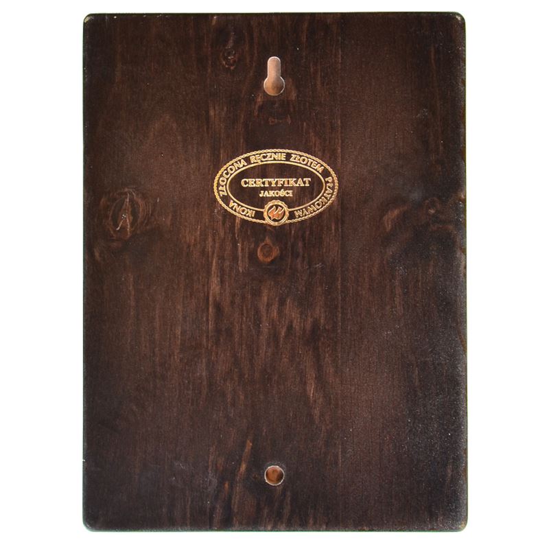 Ikona wykonana unikalną technologią nanoszenia obrazu na drewno, która pozwala na wierne odtworzenie oryginału. Deska olchowa, lita klejona, odporna na pęknięcia i wygięcia. Złocenia na ikonie wykonane ręcznie, złotem płatkowym.