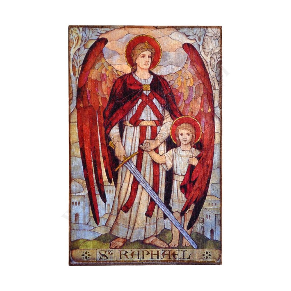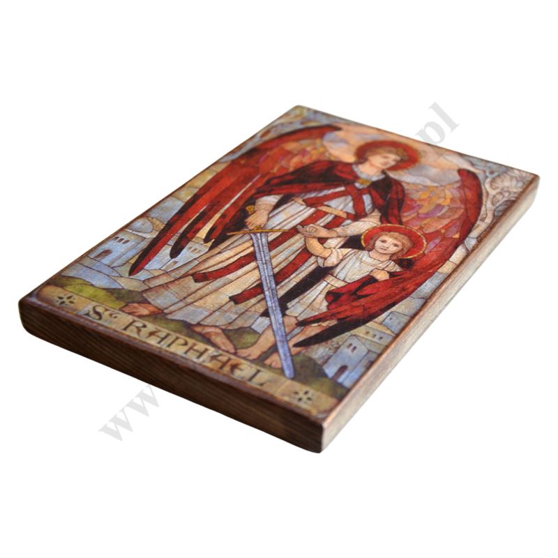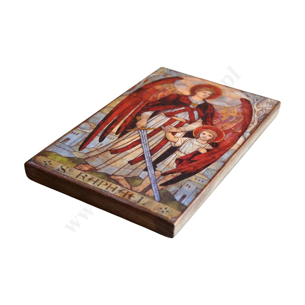 Ikona Św. Rafała Archanioła o wymiarach 11 x 17 x 1.8 cm wykonana techniką decoupage z ręcznym podmalowywaniem. PONIŻEJ W PRODUKTACH POWIĄZANYCH ISTNIEJE MOŻLIWOŚĆ ZAMÓWIENIA OKAZJONALNEJ DEDYKACJI NA TABLICZCE SREBRNEJ LUB ZŁOTEJ.
