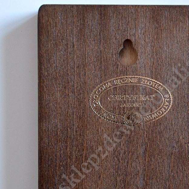 Ikona wykonana unikalną technologią nanoszenia obrazu na drewno, która pozwala na wierne odtworzenie oryginału. Deska olchowa, lita klejona, odporna na pęknięcia i wygięcia. Złocenia na ikonie wykonane ręcznie, złotem płatkowym.