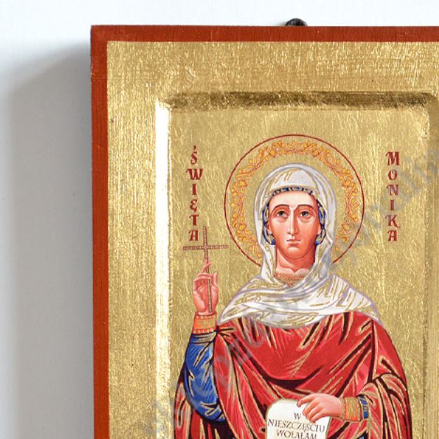 Ikona Świętej Moniki w wymiarze 14 x 18 cm. PONIŻEJ W PRODUKTACH POWIĄZANYCH ISTNIEJE MOŻLIWOŚĆ ZAMÓWIENIA OKAZJONALNEJ DEDYKACJI NA TABLICZCE SREBRNEJ LUB ZŁOTEJ.