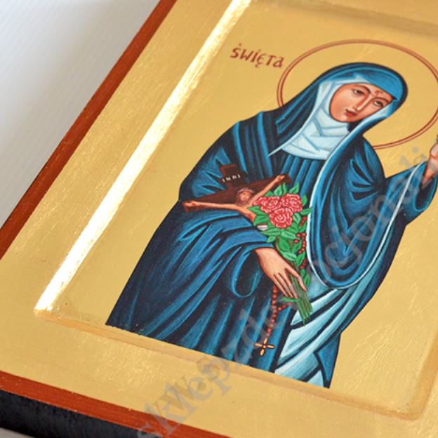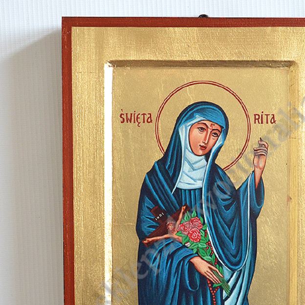 Ikona Świętej Rity w wymiarze 18 x 24 cm. PONIŻEJ W PRODUKTACH POWIĄZANYCH ISTNIEJE MOŻLIWOŚĆ ZAMÓWIENIA OKAZJONALNEJ DEDYKACJI NA TABLICZCE SREBRNEJ LUB ZŁOTEJ.