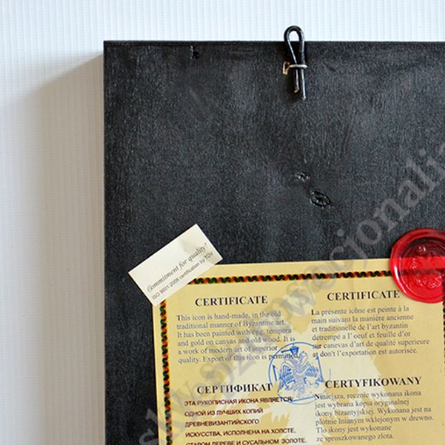 Ikona Świętej Rity w wymiarze 18 x 24 cm. Ikona ręcznie wykonana na płótnie lnianym wklejonym w drewno. Tło ikony jest wykonane ze sproszkowanego złota. Grubość deski 2.6 cm.