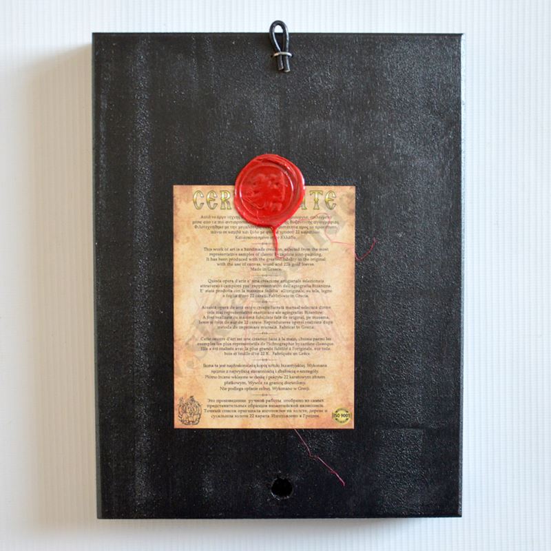 Ikona przedstawiająca wizerunek Świętej Urszuli o wymiarze 18 x 23.5 cm. Ikona ręcznie wykonana na płótnie lnianym wklejonym w drewno. Tło ikony jest wykonane ze sproszkowanego złota. Grubość deski 2.3 cm. Ikona do powieszenia jak i postawienia.