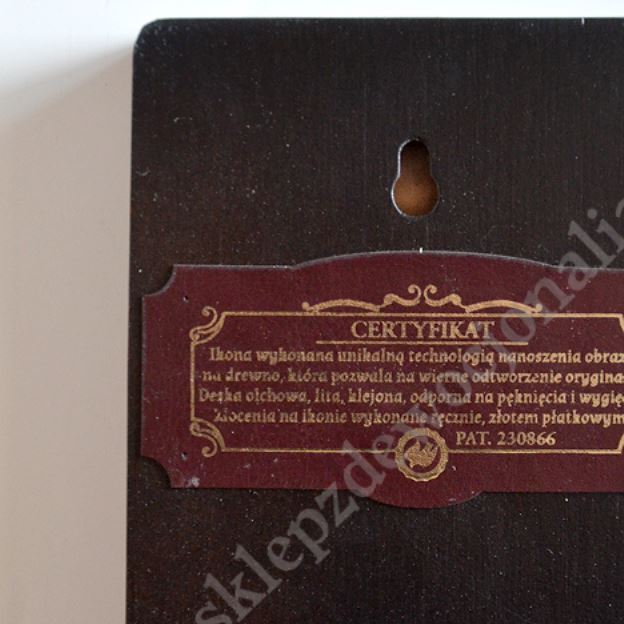 Ikona wykonana unikalną technologią nanoszenia obrazu na drewno, która pozwala na wierne odtworzenie oryginału. Deska olchowa, lita klejona, odporna na pęknięcia i wygięcia. Złocenia na ikonie wykonane ręcznie, złotem płatkowym.
