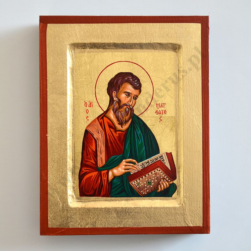 Ikona przedstawiająca wizerunek Świętego Mateusza w wymiarze 14 x 18 cm. PONIŻEJ W PRODUKTACH POWIĄZANYCH ISTNIEJE MOŻLIWOŚĆ ZAMÓWIENIA OKAZJONALNEJ DEDYKACJI NA TABLICZCE SREBRNEJ LUB ZŁOTEJ.