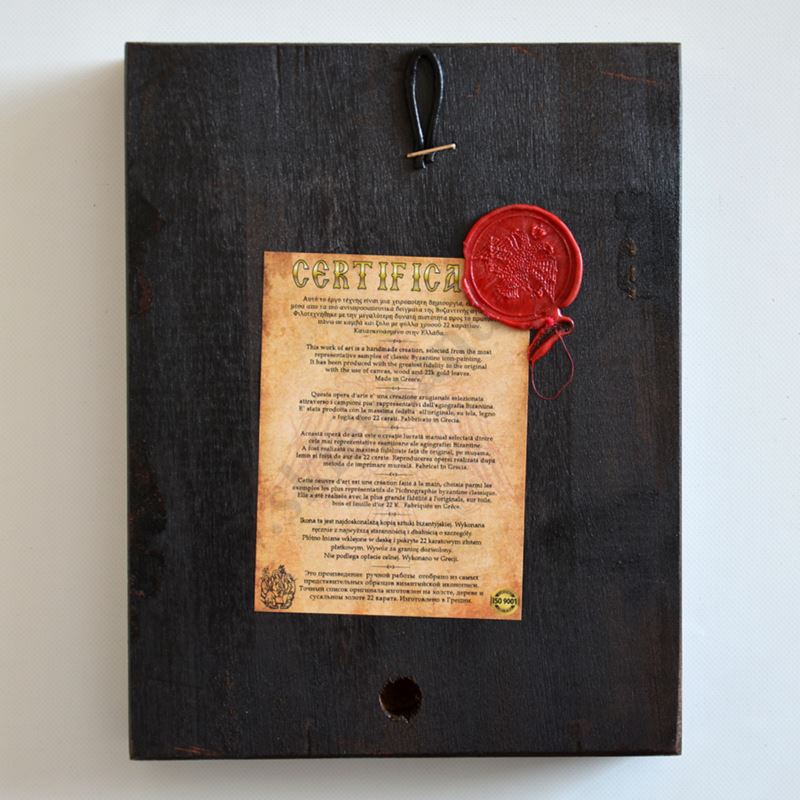 Ikona przedstawiająca wizerunek Świętego Mateusza w wymiarze 14 x 18 cm. Ikona ręcznie wykonana na płótnie lnianym wklejonym w drewno. Grubość deski 2.4 cm. Ikona do powieszenia jak i postawienia.