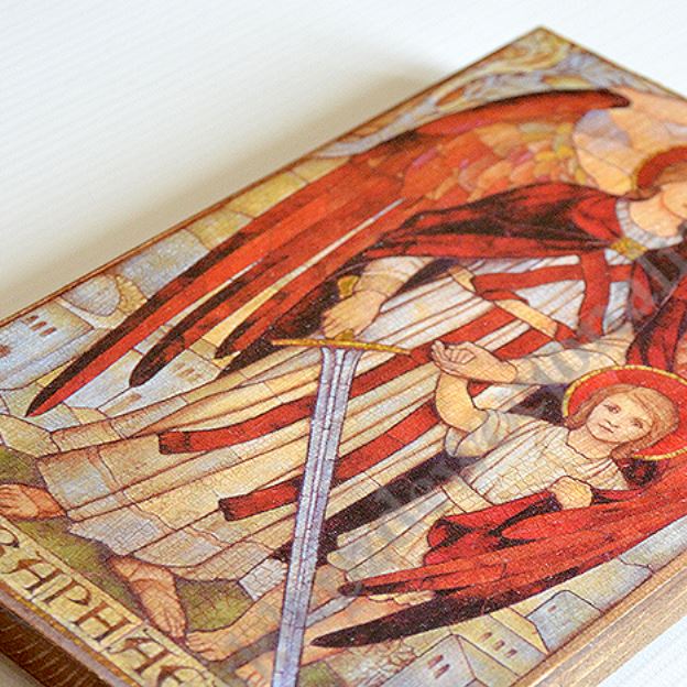 Ikona Świętego Rafała o wymiarach 13 x 20 x 1.8 cm wykonana techniką decoupage z ręcznym podmalowywaniem. PONIŻEJ W PRODUKTACH POWIĄZANYCH ISTNIEJE MOŻLIWOŚĆ ZAMÓWIENIA OKAZJONALNEJ DEDYKACJI NA TABLICZCE SREBRNEJ LUB ZŁOTEJ.