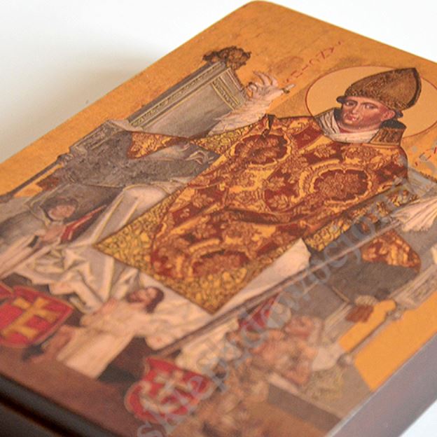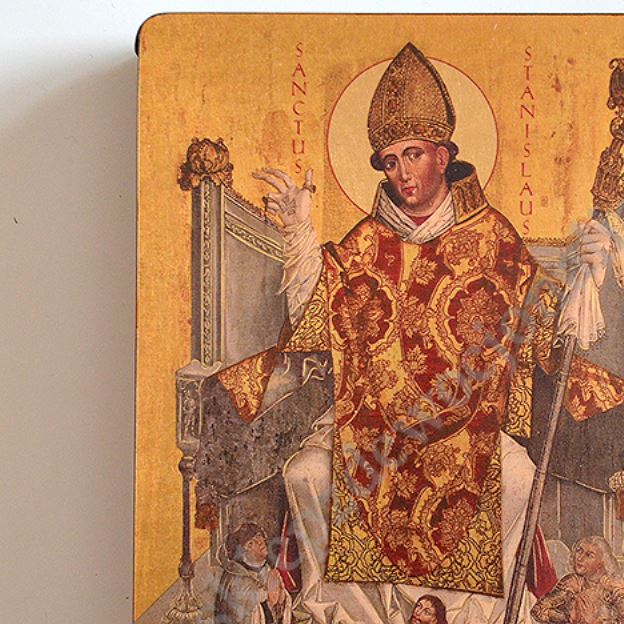Ikona Świętego Stanisław o wymiarze 12 x 16 cm i grubości 2.5 cm. PONIŻEJ W PRODUKTACH POWIĄZANYCH ISTNIEJE MOŻLIWOŚĆ ZAMÓWIENIA OKAZJONALNEJ DEDYKACJI NA TABLICZCE SREBRNEJ LUB ZŁOTEJ.