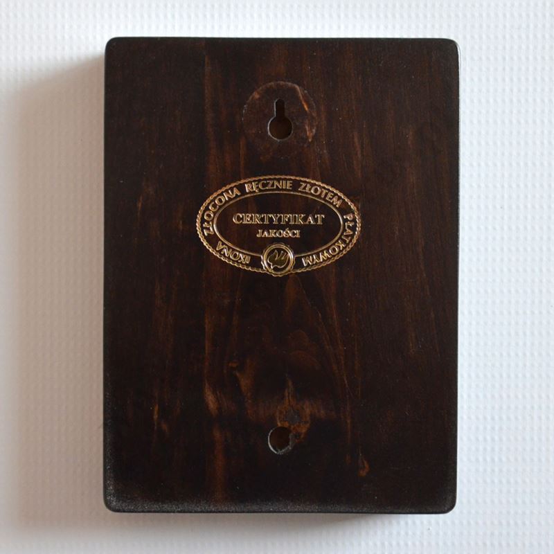 Ikona o wymiarach 11.9 x 16 cm, grubość deski 2.4 cm. Ikona z możliwością powieszenia lub postawienia. PONIŻEJ W PRODUKTACH POWIĄZANYCH ISTNIEJE MOŻLIWOŚĆ ZAMÓWIENIA OKAZJONALNEJ DEDYKACJI NA TABLICZCE SREBRNEJ LUB ZŁOTEJ.