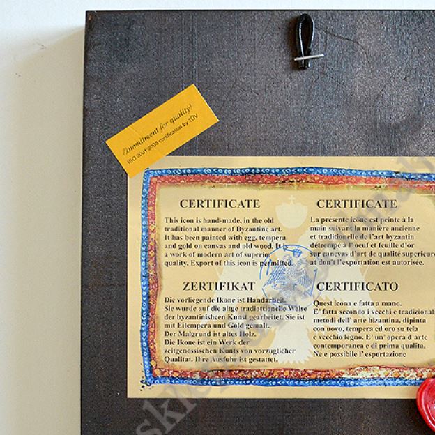 Ikona Trójcy Swiętej w wymiarze 18 x 24 cm. PONIŻEJ W PRODUKTACH POWIĄZANYCH ISTNIEJE MOŻLIWOŚĆ ZAMÓWIENIA OKAZJONALNEJ DEDYKACJI NA TABLICZCE SREBRNEJ LUB ZŁOTEJ.