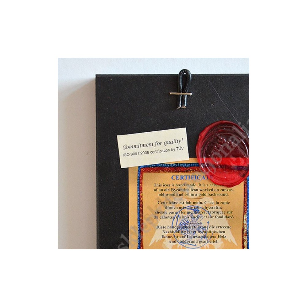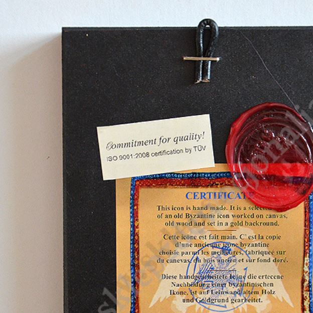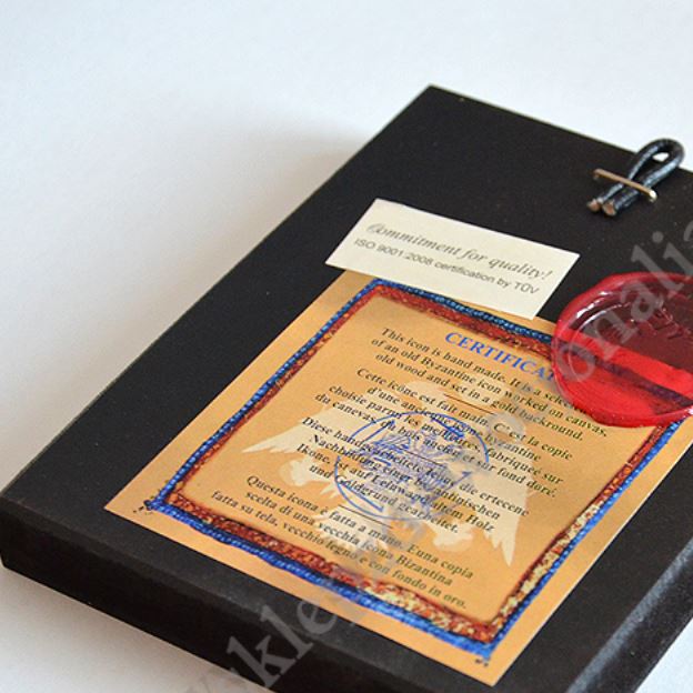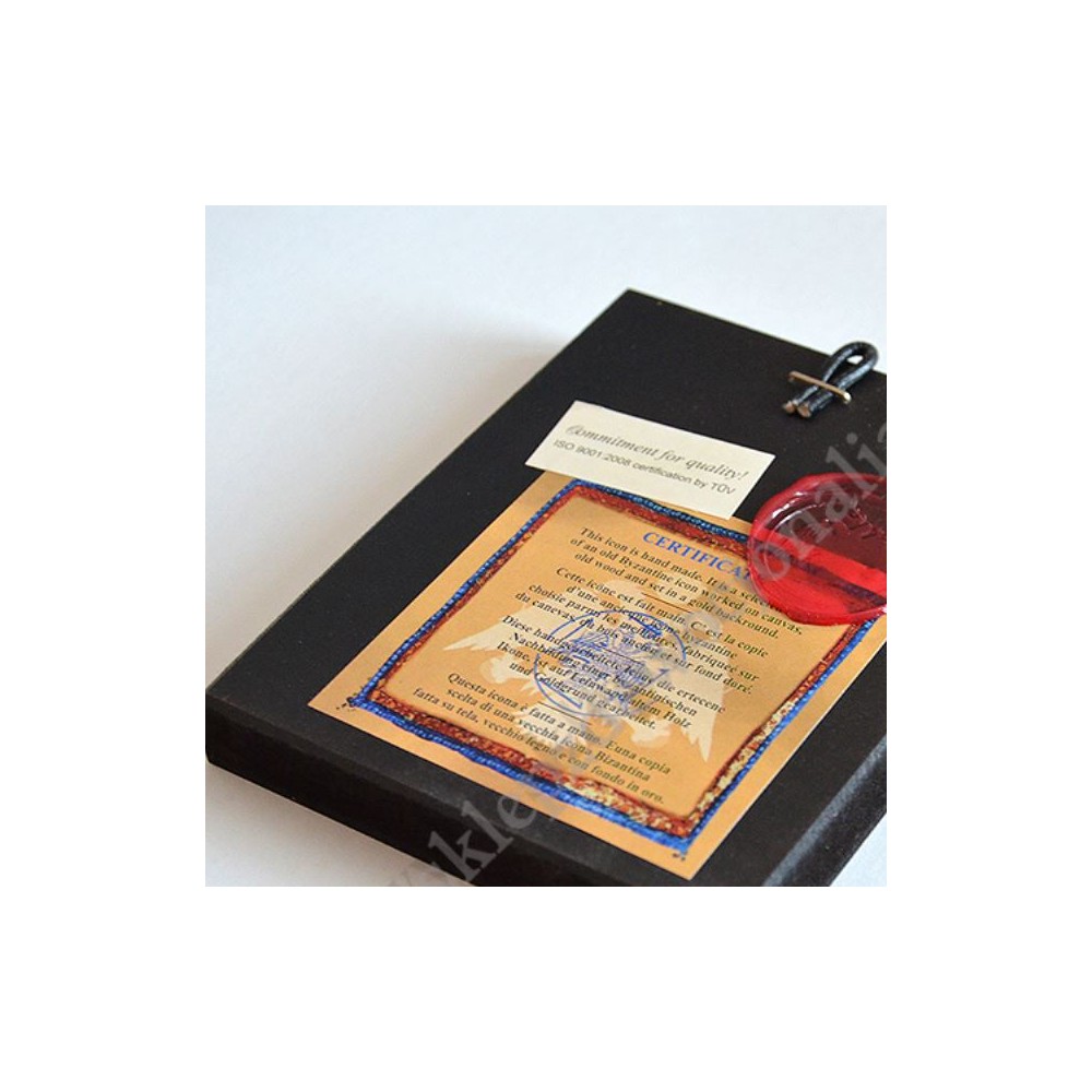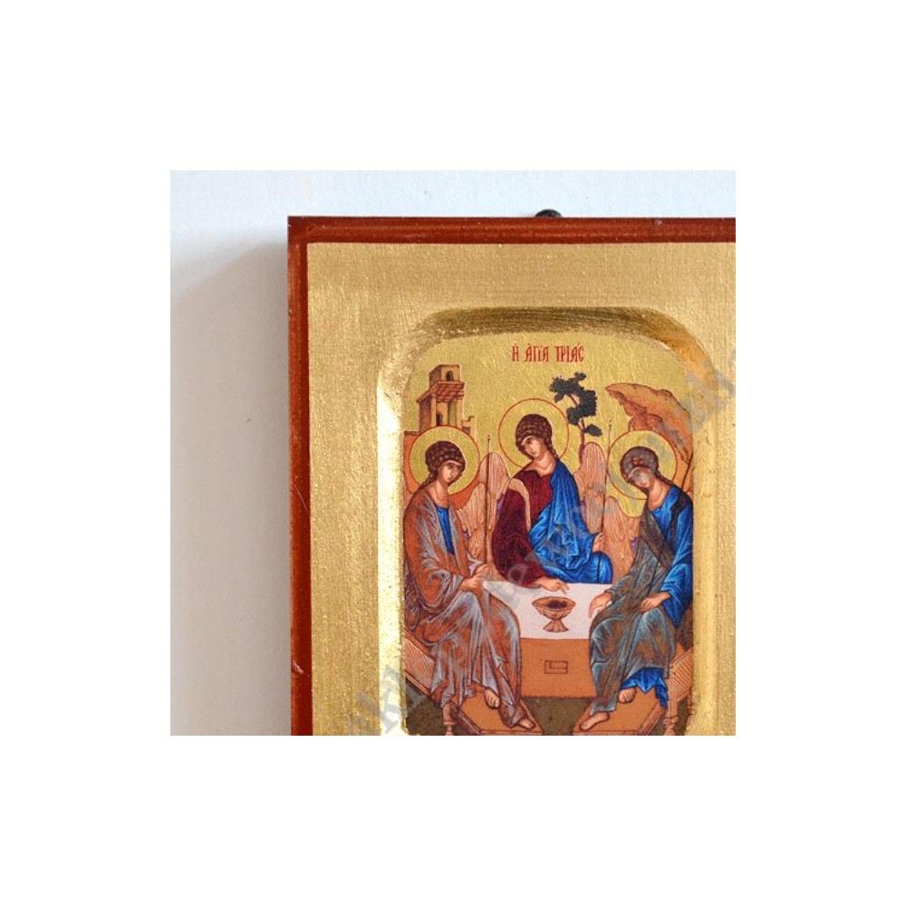 Ikona Trójcy Świętej - Rublowa w wymiarze 10.5 x 12.5 cm. Ikona ręcznie wykonana na płótnie lnianym wklejonym w drewno. Tło ikony jest wykonane ze sproszkowanego złota. Grubość deski 1.5 cm.