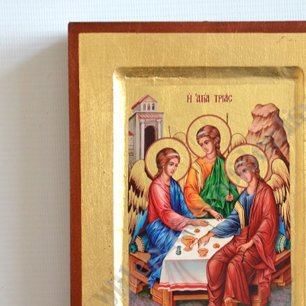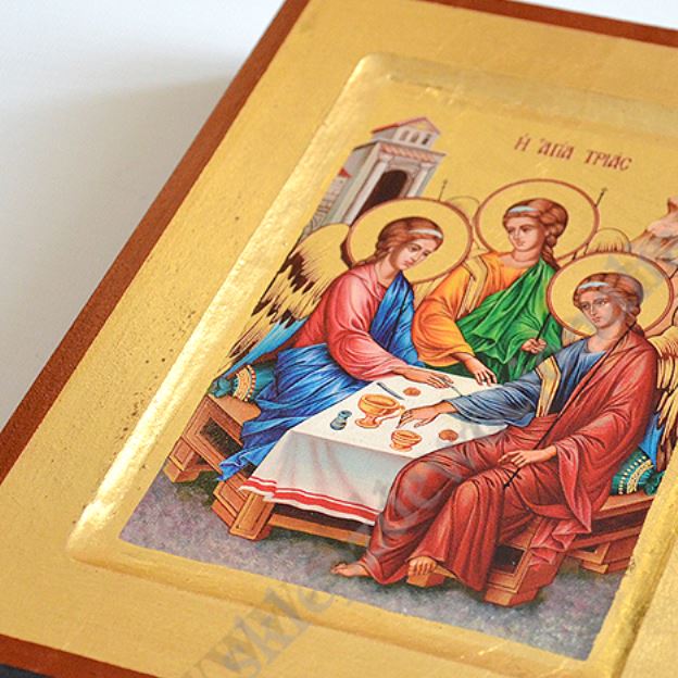Ikona przedstawiająca Trójcę Świętą w wymiarze 14 x 18 cm. PONIŻEJ W PRODUKTACH POWIĄZANYCH ISTNIEJE MOŻLIWOŚĆ ZAMÓWIENIA OKAZJONALNEJ DEDYKACJI NA TABLICZCE SREBRNEJ LUB ZŁOTEJ.