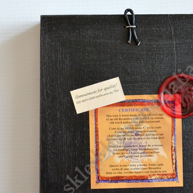 Ikona przedstawiająca Trójcę Świętą Rublową w wymiarze 14 x 18 cm. Ikona ręcznie wykonana na płótnie lnianym wklejonym w drewno. Grubość deski 2.3 cm. Ikona do powieszenia jak i postawienia.