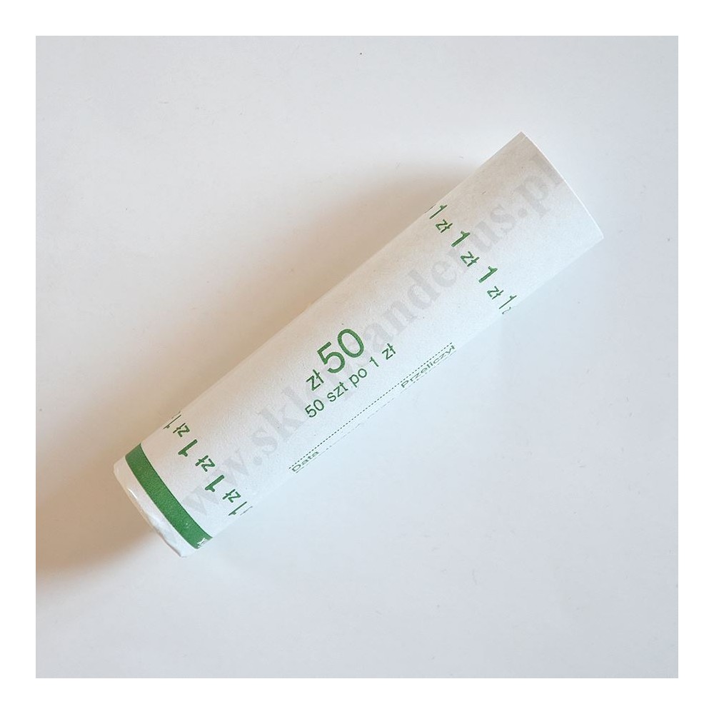 Papierowe gilzy umożliwiają pakowanie bilonu 1 zł w rulony po 50 szt. Sprzedaż w kompletach po 10 szt. gilz.