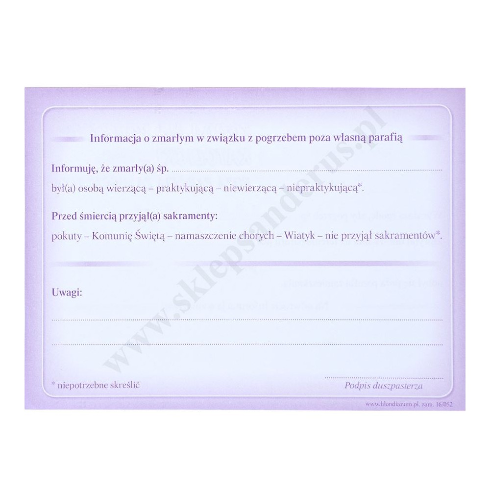 ZGODA NA POGRZEB POZA PARAFIĄ - format 14 x 10.3 cm - paczka 50 szt. - 70380