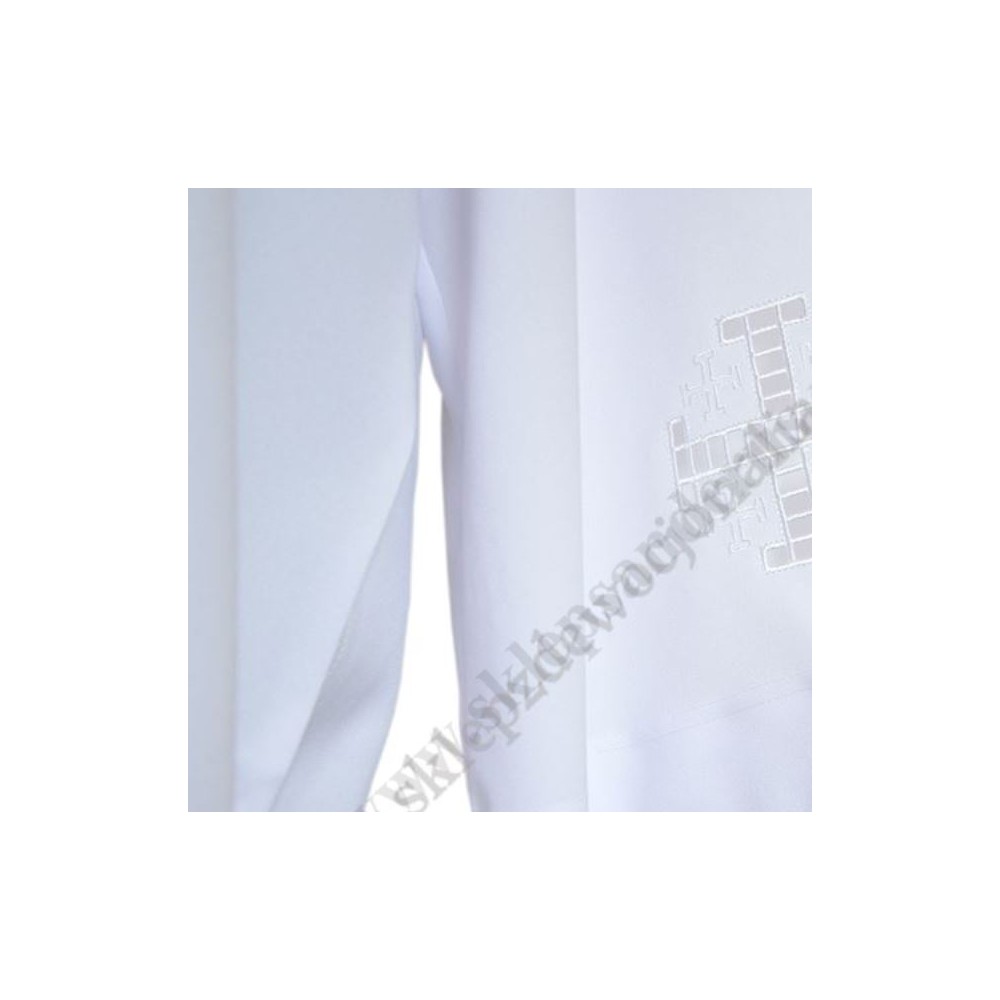 Alba kapłańska haft wypalana, wykonana z 100% poliester, wzrost 176 cm. Inne rozmiary znajdują się poniżej w produktach powiązanych.