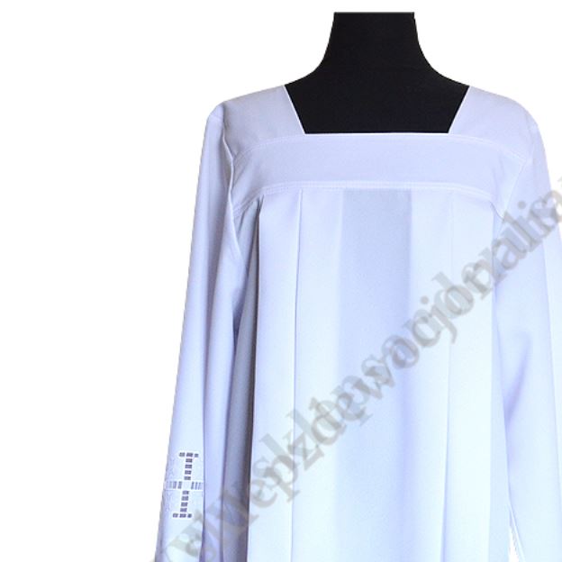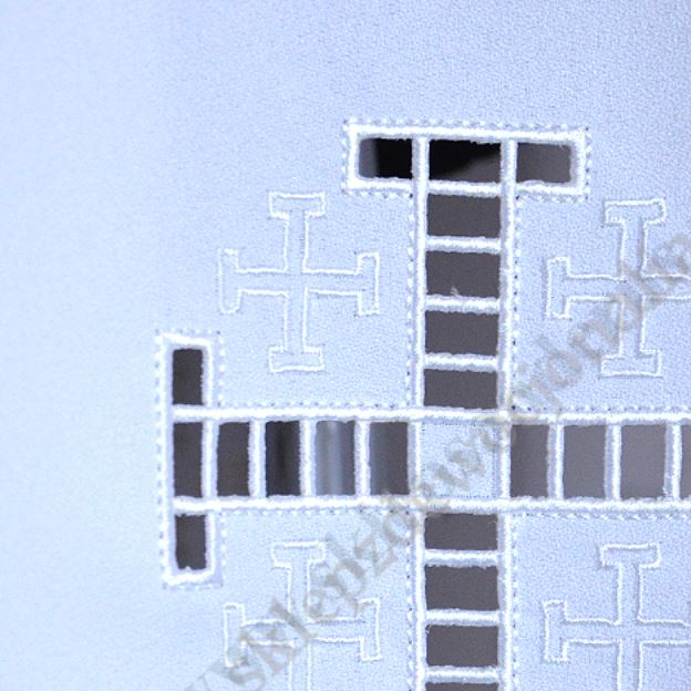 Komża kapłańska haft wypalana wykonana z 100% poliester, materiał żorżeta, wzrost 170 cm. Inne rozmiary znajdują się poniżej w produktach powiązanych.