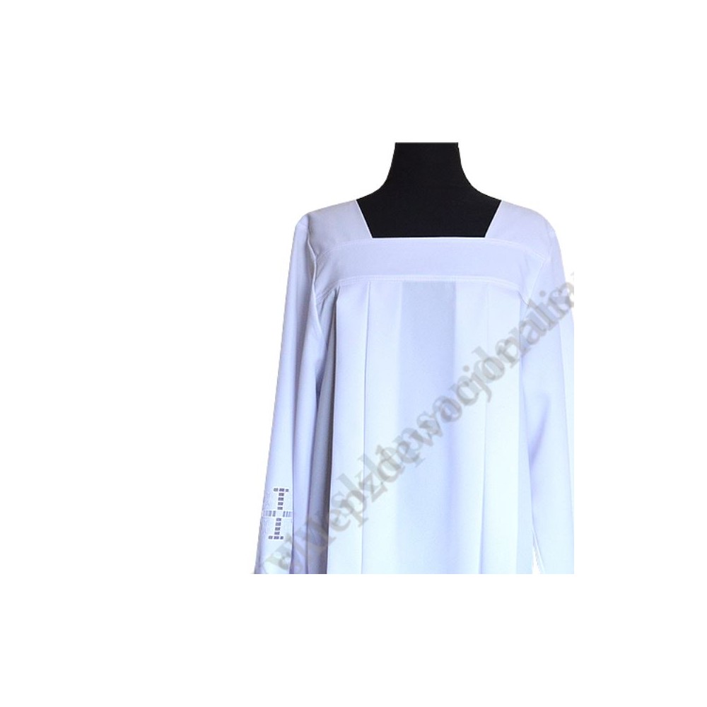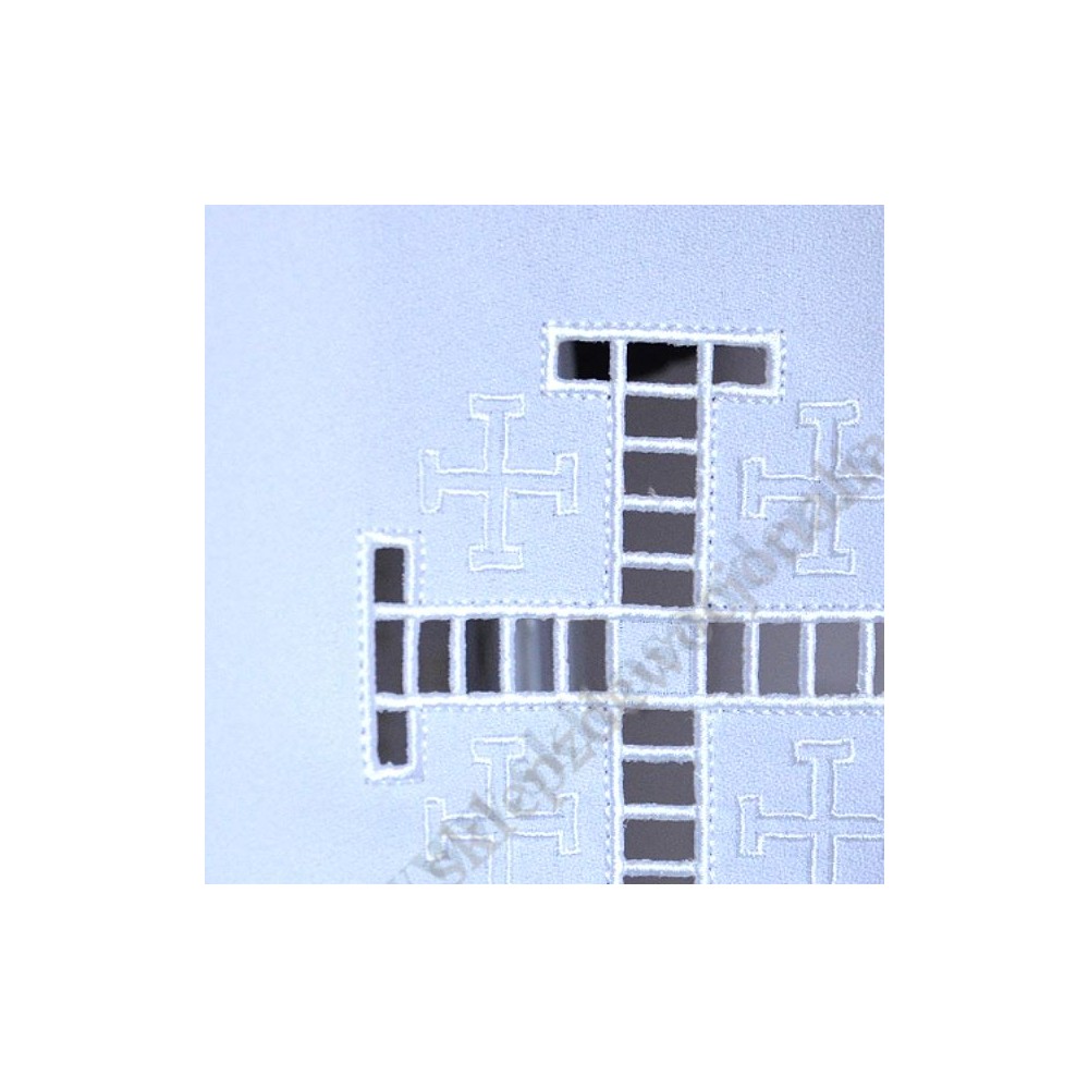 Komża kapłańska haft wypalana wykonana z 100% poliester, materiał żorżeta, wzrost 176 cm. Inne rozmiary znajdują się poniżej w produktach powiązanych.