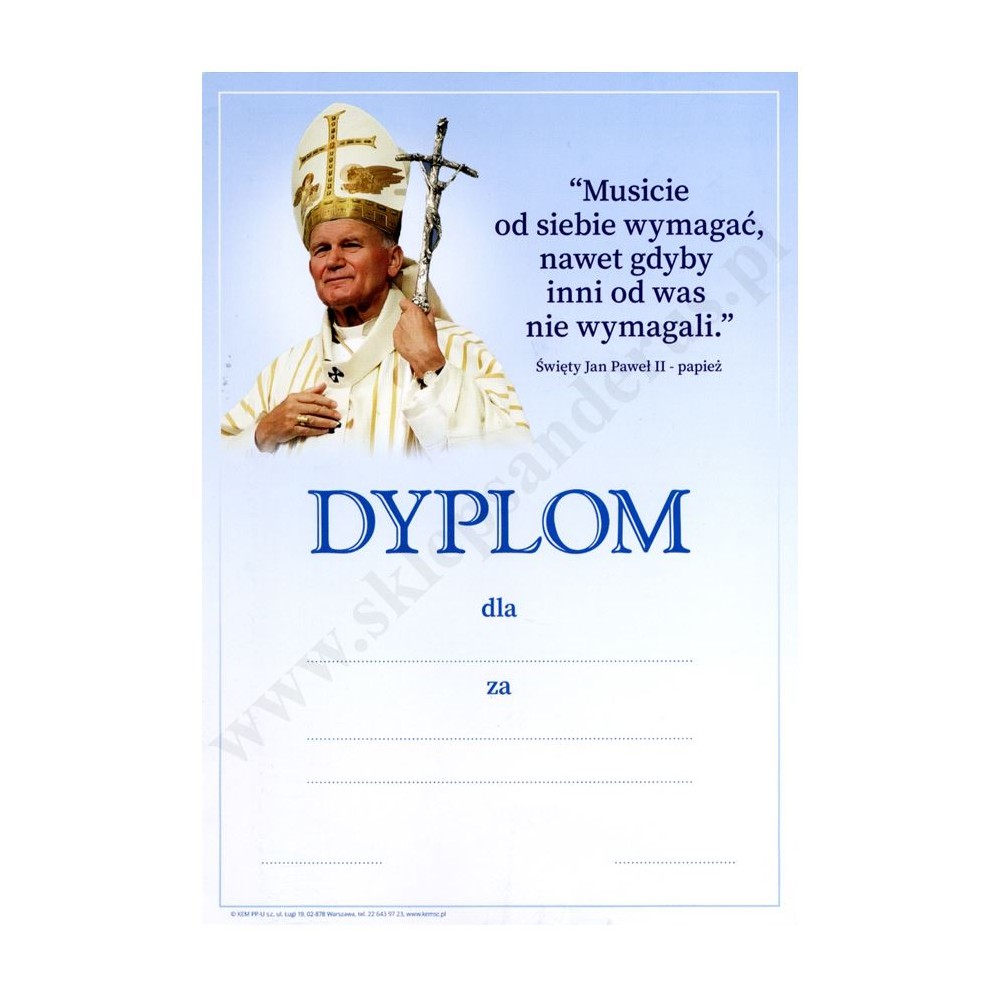 Dyplom uniwersalny w formacie A5 z wizerunkiem i cytatem Świętego Jana Pawła II.