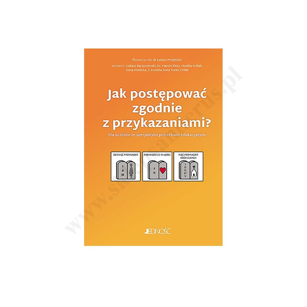 Książka przeznaczona do treningu umiejętności społecznych (tzw. książeczka TUS-owa) związanych z tematyką Dekalogu, przykazania miłości i przykazań kościelnych. Zastosowano w niej zdjęcia scenek, które pokazują, jak przykazania realizują się w naszym życiu. Do każdej scenki przygotowano zestaw pytań, które są tak sformułowane, by dziecko analizowało obrazek od ogółu do szczegółu. Szczególnie dla dzieci autystycznych, które skupiają się na nieistotnych elementach ilustracji, jest to spora trudność. Dzięki takiej formie pracy uczniowie dowiedzą się, w jaki sposób uczestniczyć w życiu społecznym, zachowując przykazania. Książka stanowi bardzo wartościowe uzupełnienie sposobu prowadzenia zajęć z wykorzystaniem kart pracy „Dziesięć przykazań” oraz „Przykazanie miłości i przykazania kościelne”.