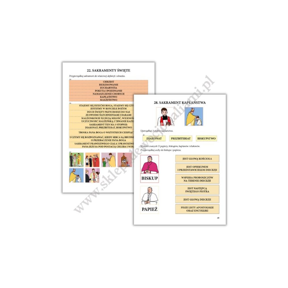 Prezentujemy Państwu Zestaw ćwiczeń do religii dla starszych uczniów z niepełnosprawnością intelektualną oraz z autyzmem pt. „Jezus jest naszym Przyjacielem”. Zestaw składa się z 40 opracowanych katechez, zawierających tematyczne zadania i ułożonych zgodnie z poszczególnymi okresami Roku Liturgicznego. W proponowanym Państwu i uczniom zadaniach zostały zamieszczone selektywnie dobrane piktogramy, które powstały z myślą o uczniach przejawiających trudności z komunikowaniem się.