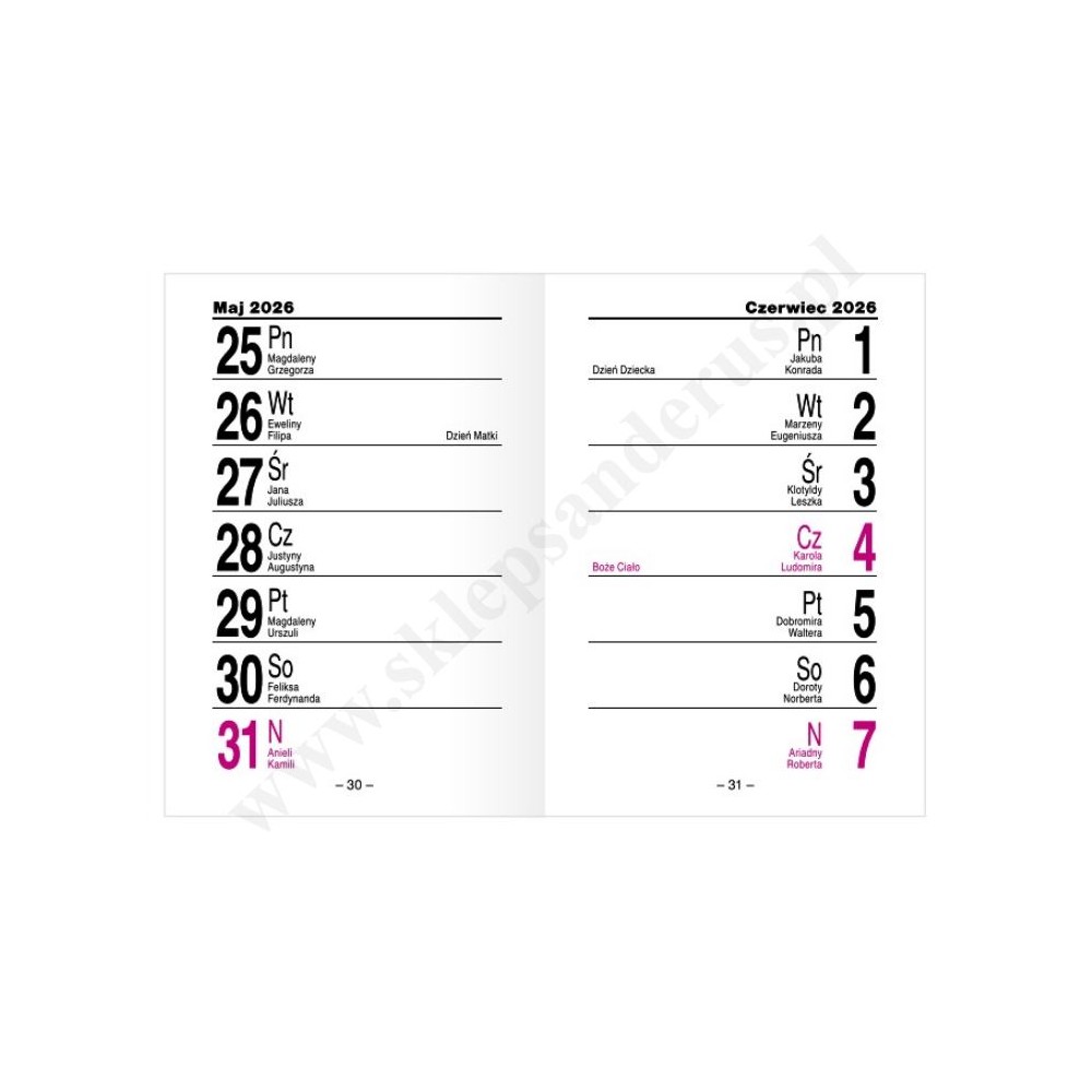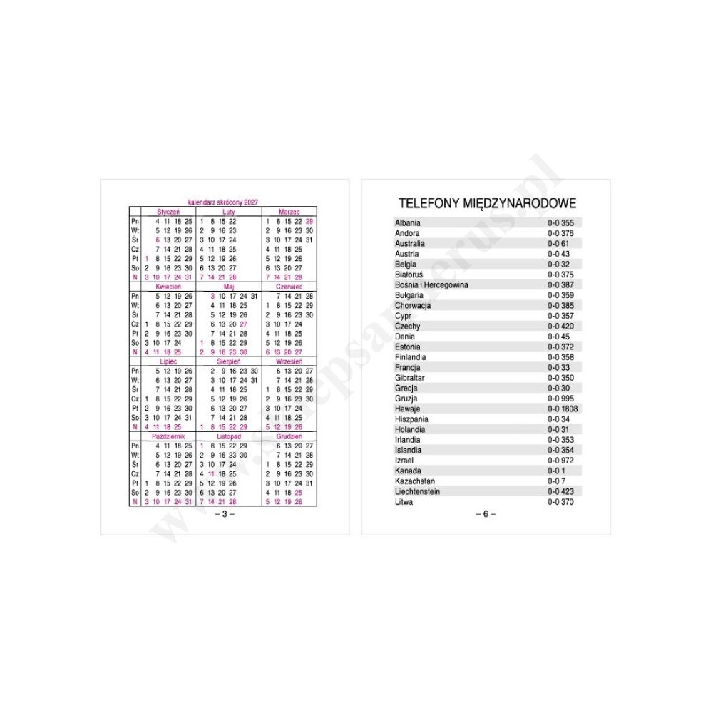 Kalendarzyk kieszonkowy na rok 2026 w formacie A7.