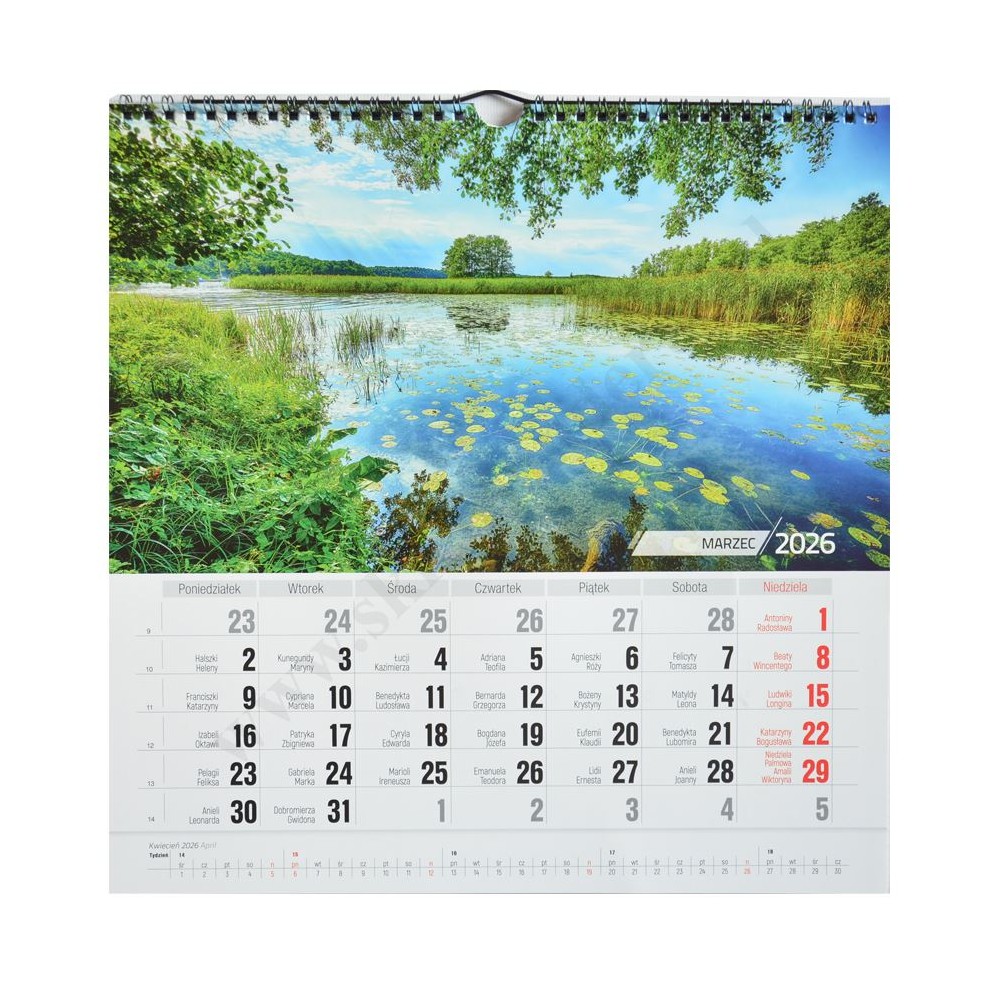 Kalendarz ścienny na rok 2026 w formacie 32.7 x 32.7 cm.