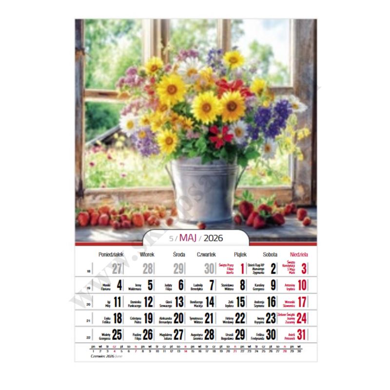 Kalendarz ścienny na rok 2026 w formacie A4.