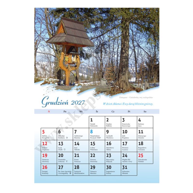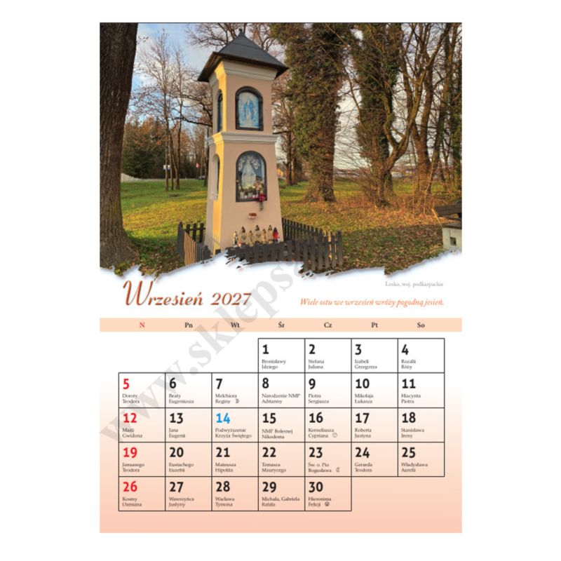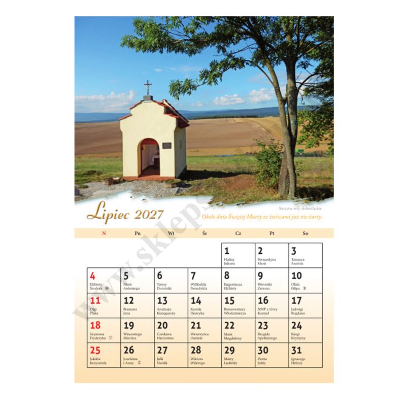 Śladami wiary kalendarz na ścianę na rok 2027 w formacie A4. Zdjęcia w kalendarzu przedstawiają przydrożne kapliczki z różnych miejsc naszej Ojczyzny - świadków wiary narodu polskiego.